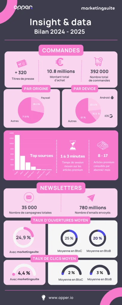 The year 2024 marked a significant acceleration in the use of integrated marketing tools. Thanks to our marketingsuite platform, numerous news publishers and businesses optimized their campaigns, analyzed their performance, and structured their omnichannel strategy.